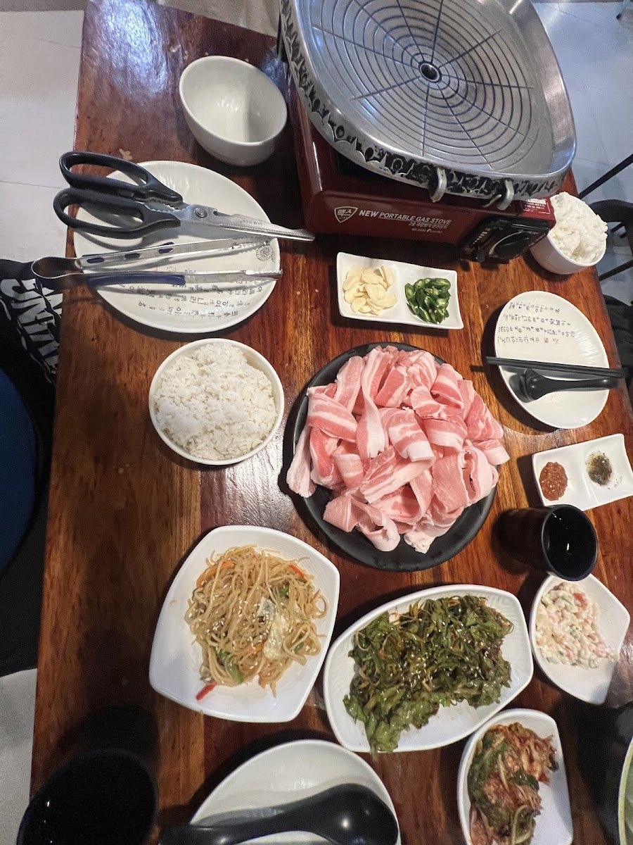 Food is absolotely astonishing (idk if i spelt that right), Service is amazing and actually super surprising. One time I dropped my chopstick and one of the workers came running to hand me a new chopstick, I was super shocked on the reaction time that the staff had. The are really kind and they are so generous to give out stuff. The staff helps us with stuff and problems we didn’t even call out for help. Amazing service, they play jazz at a relaxing volume which enhances our appetite and the food. Overall the restaurant is an amazing samgyupsal area for people who are looking for a budget meal which is affordable and really stuffs you. Amazing restaurant, ill be coming back very soon.